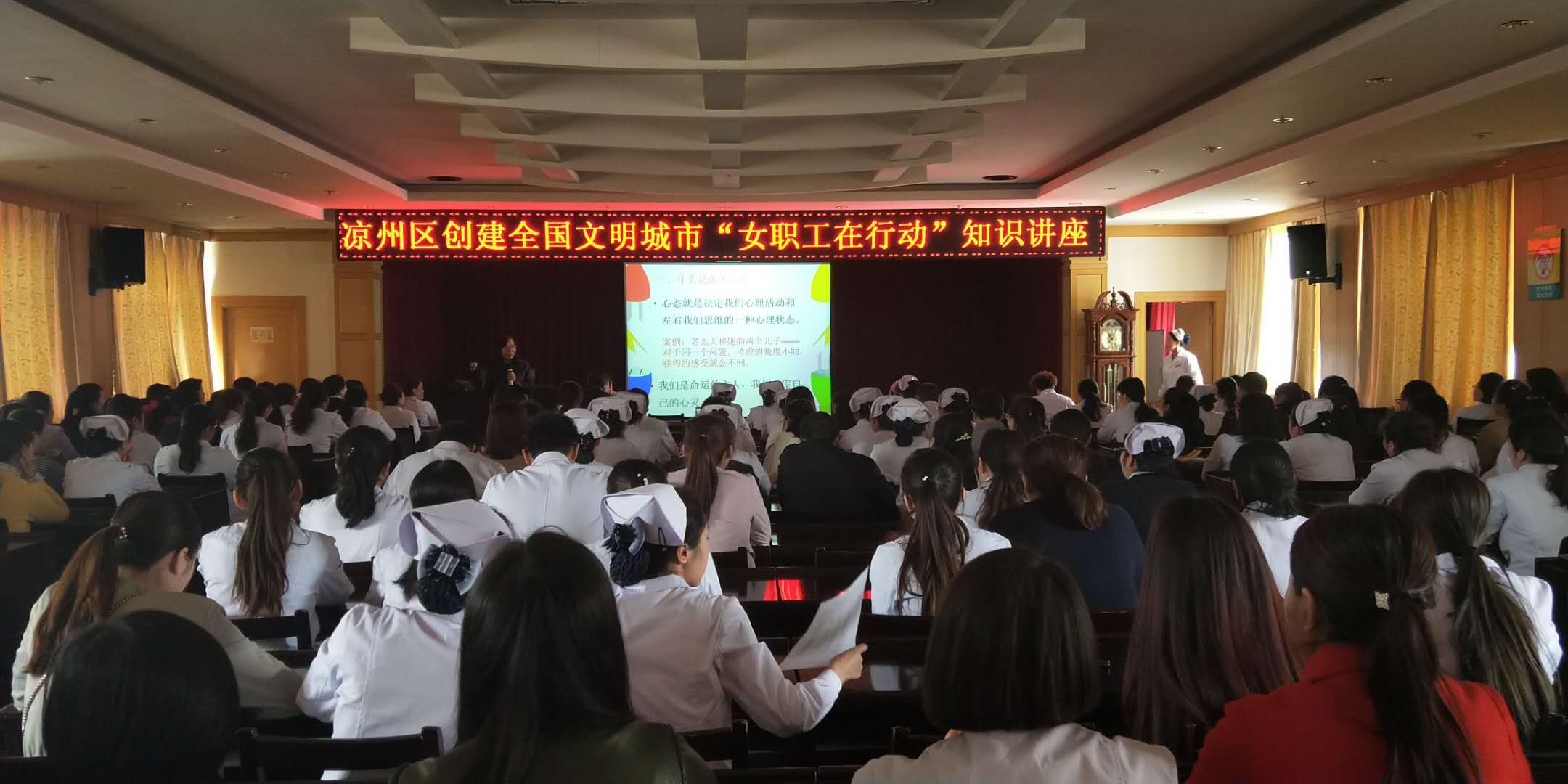 目前,创建全国文明城市“女职工在行动”知识讲座已在区教育局、西大街、供热集团、凉州医院等单位进行了9场次,参与职工3000多人。