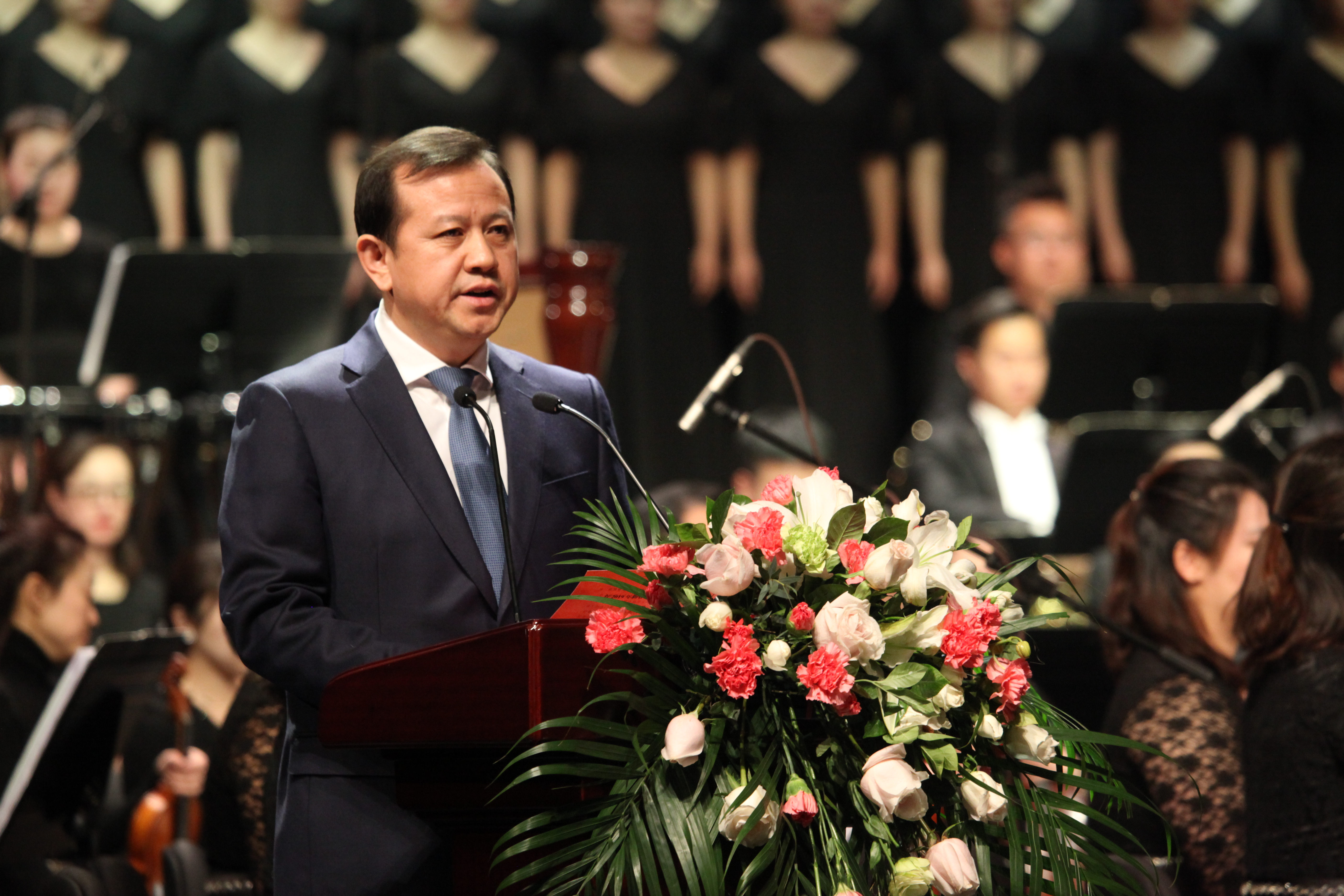 市委书记柳鹏在演出前致辞,并向全市人民致以新春的问候和美好的祝福。柳鹏表示,刚刚过去的一年,全市上下践行新发展理念,贯彻高质量发展要求,坚定不移走生态优先、绿色发展之路,努力建设经济强市、生态大市、文化旅游名市,全力打造生态美、产业优、百姓富的和谐武威,迎难而上、负重爬坡,扎实推进脱贫攻坚、全域生态文明建设、产业转型升级、保障和改善民生、创建全国文明城市等重点工作,全市经济社会发展和党的建设取得新的成效,为高质量发展蓄积了新动能,形成了风清气正、心齐劲足的良好发展环境。今年是新中国成立70周年,是全面建成小康社会的关键之年,我们要不忘初心、牢记使命,重整行装再出发,坚定不移走生态优先、绿色发展之路,全力打好三大攻坚战,奋力开创高质量发展新局面,以优异成绩献礼新中国70周年华诞。