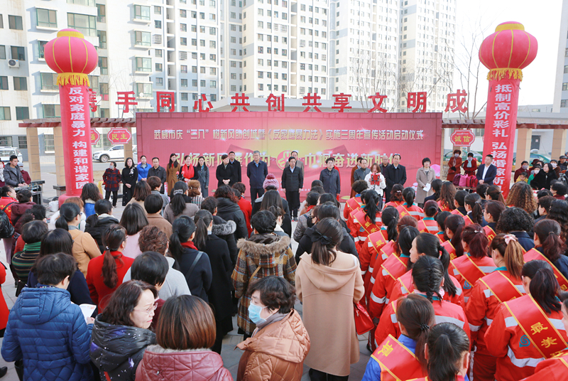 3月2日,武威市三县一区妇联,101个乡镇(街道)妇联,1123个村(社区)妇联上下联动同时启动庆“三八”树新风系列活动暨《反家庭暴力法》实施三周年宣传活动启动仪式,隆重庆祝第109个“三八”国际劳动妇女节。