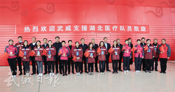 柳鹏强调,市委、市政府十分关心大家,研究制定出台了武威市支援湖北武汉医务人员在政治关怀、优先评先推优、优先评聘职称、照顾子女就学等九项政策措施,让英雄受到应有的尊敬和关爱。全市各级党组织和全社会要广泛学习支援湖北武汉医务人员不怕牺牲、不怕困难无私无畏的奉献精神。要大力宣传新时代的英雄,让他们的英雄事迹在武威家喻户晓。