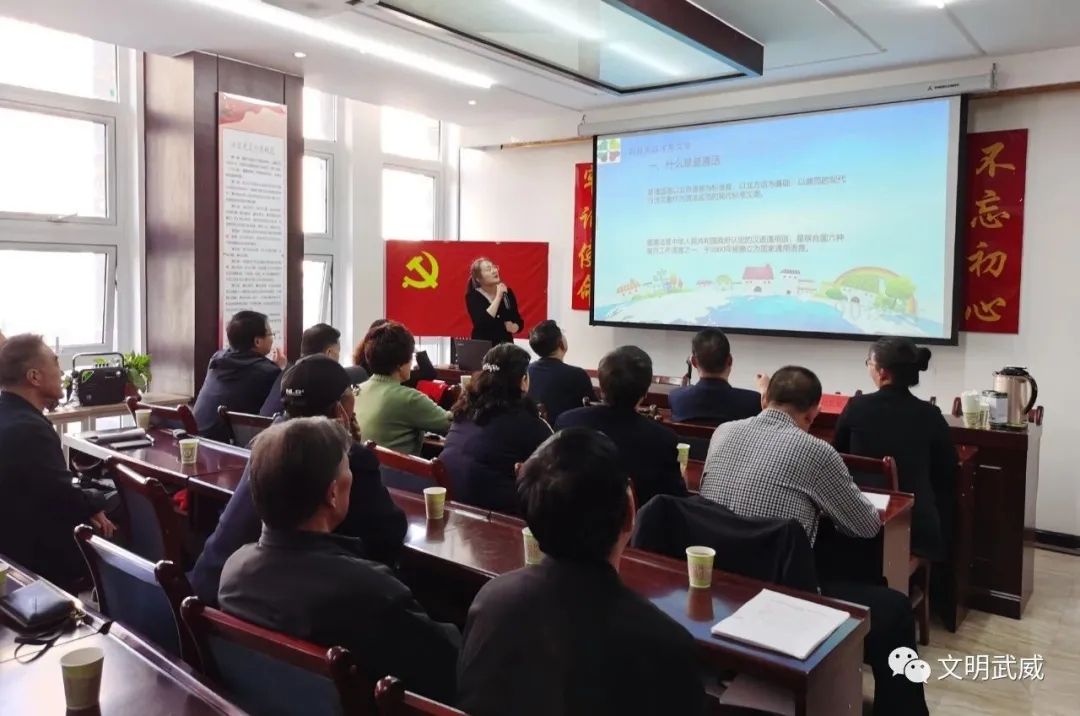 为全面贯彻落实我国通用语言文字方针政策和法律法规,传承中华优秀传统文化,提升陆港管委会全体干部普通话水平,助力创建全国文明城市,武威国际陆港管委会以“说普通话、讲文明语、创文明城、展新形象”为主题,按照“大力推行、逐步提高、全面普及”原则,精心制定培训计划,常态化开展普通话培训活动。