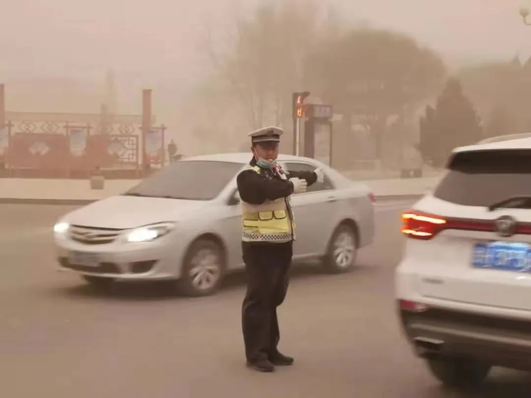 3月15日以来,近10年最强沙尘暴来袭,天气突变,黄沙漫天、沙尘肆虐,能见度低,群众出行、生产生活受到严重影响,给群众出行安全带来了极大影响。为全力抗击风沙,全市广大志愿者和各级公安机关交警部门,闻“风”而动,以“沙”为令,积极行动,战风沙、斗浮尘,最大限度缓解恶劣天气对交通安全的不利影响,保障群众出行安全。