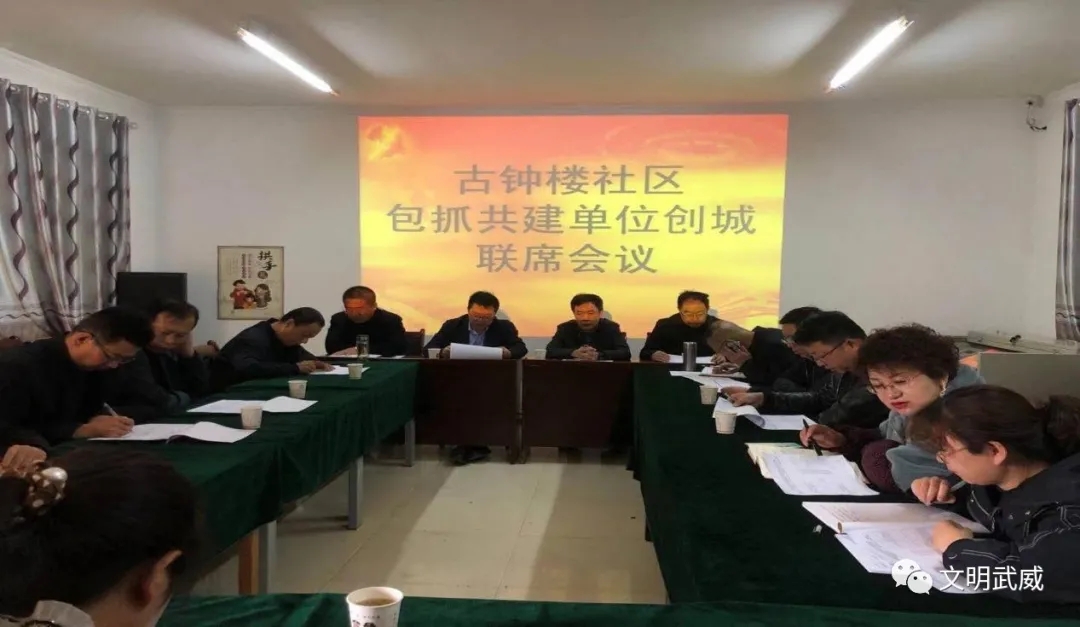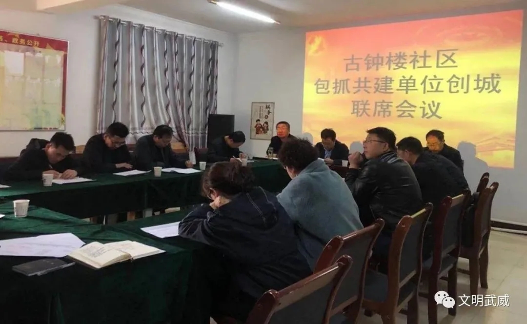 为推动第七届创建全国文明城市凉州区东大街古钟楼社区工作创新发展,近日,召开了2021年第一次包抓共建单位创城联席会议。市档案馆、市民宗委、联通武威分公司、市农业综合行政执法队、区委编办、区委统战部、街道主要领导、社区书记及社区创城工作人员参加了此次会议。