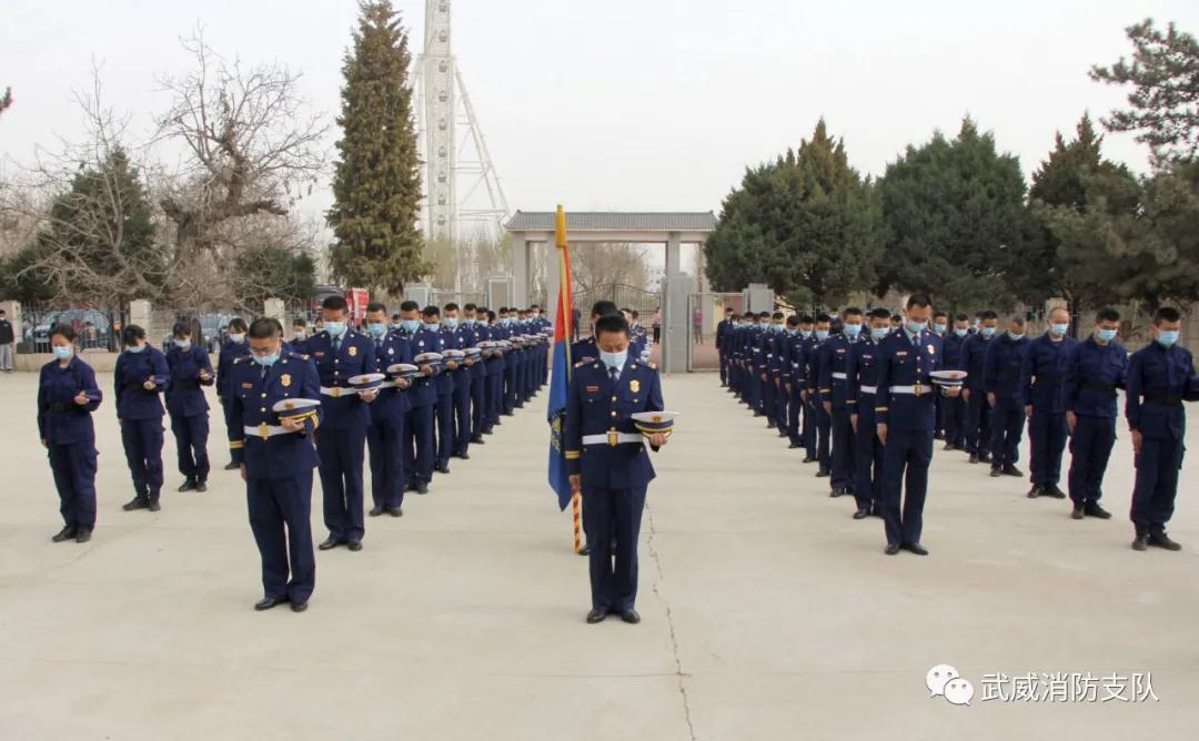 上午9时,活动在庄严的国歌声中开始。在烈士陵园纪念碑前,全体指战员脱帽肃立,向革命烈士和消防英烈默哀,致以深深的敬意和无限的哀思。默哀仪式结束后,4名指战员代表端举着花篮,迈着缓慢庄重的礼步,向革命烈士纪念碑敬献花篮,追悼烈士英灵。