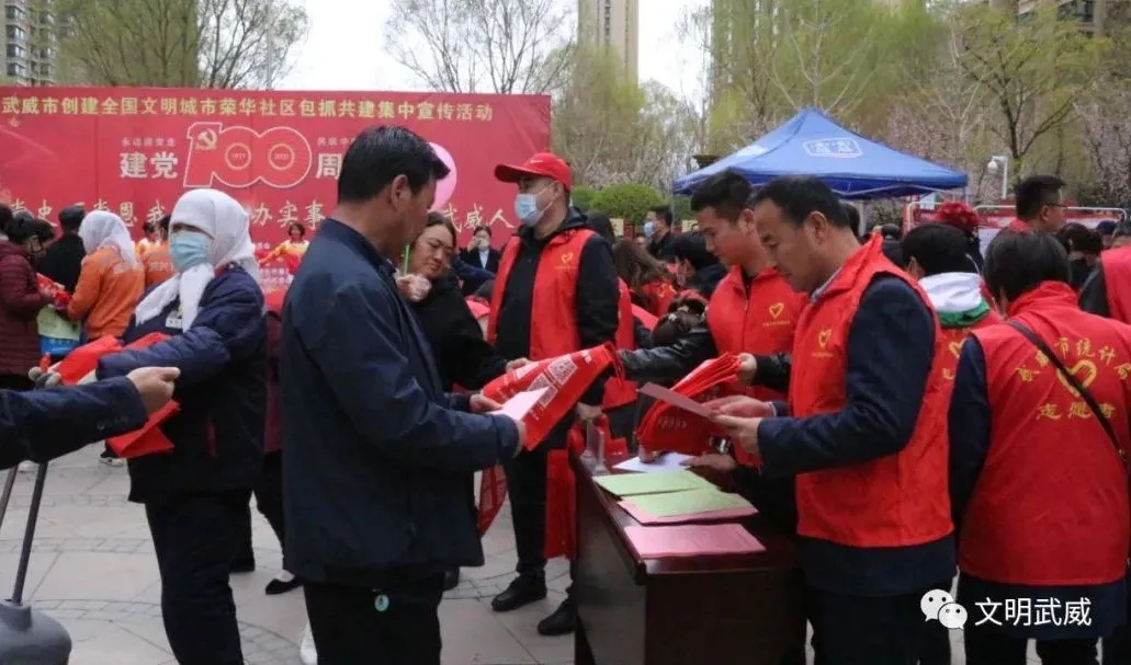 4月2日下午,市委政法委组织创建全国文明城市荣华社区市、区两级包抓共建单位在恒大绿洲小区开展“学党史、颂党恩,我为群众办实事,争做文明武威人”集中宣传暨主题党日活动,市、区两级包抓共建单位干部职工、荣华街街道及荣华社区干部、居民共计400余人参加活动。