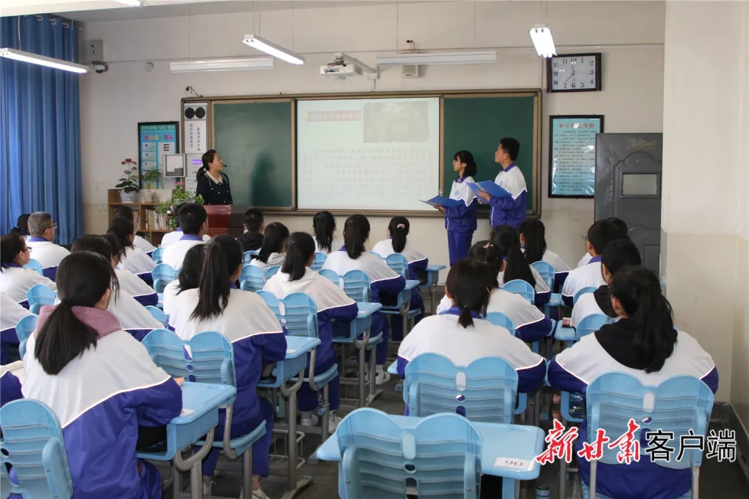 4月16日上午,记者在学校教学楼一楼看到,高二(5)班正在开展“缅怀革命先烈,传承红色基因”的主题班会,另一间教室里,书法特长的学生正用不同字体书写“学史明理、学史增信、学史崇德、学史力行”。操场上,正在排练大型舞蹈《春海》和大型合唱节目《从七月开始》。在校园一侧,矗立着一栋显眼的建筑。据介绍这栋建筑叫做“凤凰台”,如今已经改造成校史馆。走进校史馆,学生大使刘烨正为同学们讲身边榜样:甘肃最早的共产党员、武威乃至甘肃革命火种传播第一人、武威师范学校(十八中前身)国文历史教员——张一悟同志生平事迹的介绍、推广和传播。