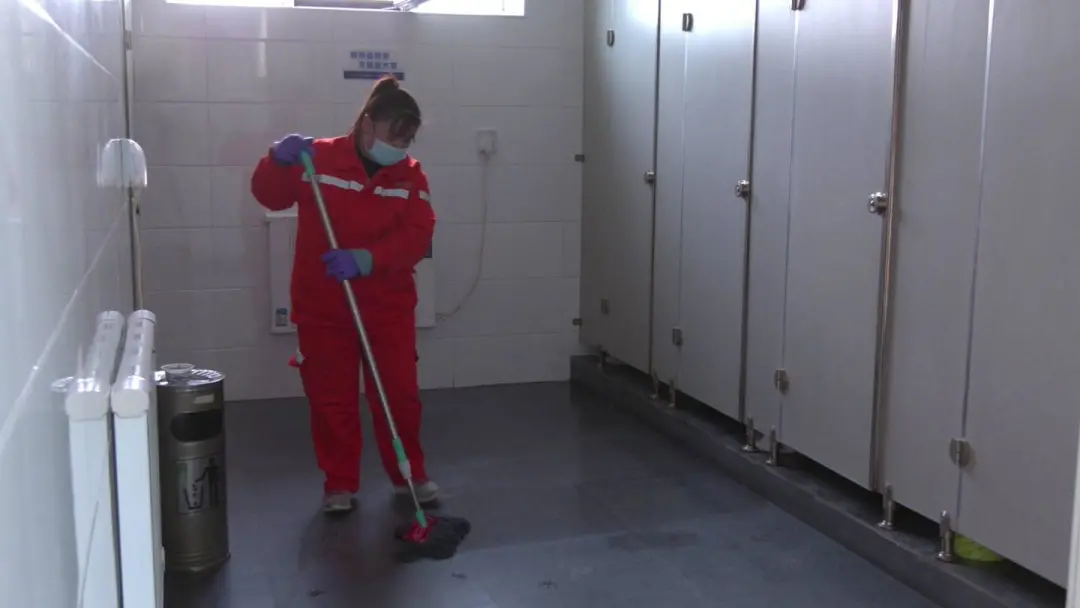 保洁员徐荣说:   我们上班首先开始检查台面、地面、蹲坑是否干净,点香、放纸、清洁地面。每半小时开始消毒,时刻保持公共卫生间干净、清洁,方便广大市民使用。