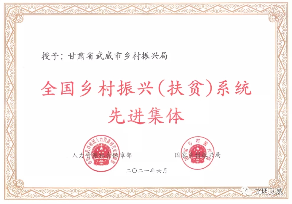 喜讯!武威市乡村振兴局荣获全国乡村振兴(扶贫)系统先进集体