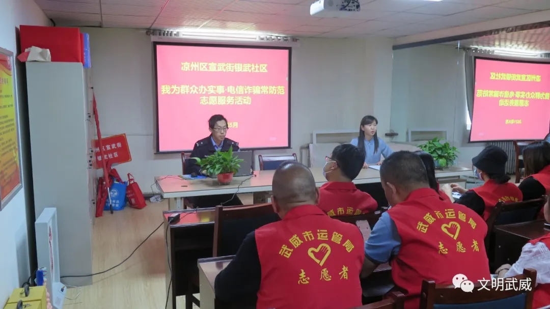 5月7日,市运管局组织志愿者参加宣武街银武社区防范电信诈骗、禁毒宣传志愿服务活动。通过防电信诈骗知识讲座、观看防诈骗短片、交流诈骗案例等形式,深入了解电信诈骗的常用作案手段和防范措施。