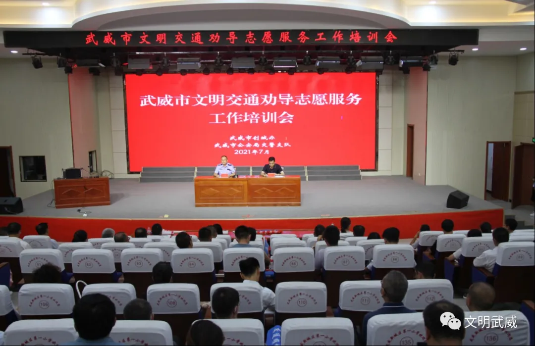 为进一步推进全市文明交通志愿服务工作,规范文明交通劝导行为,提升文明交通劝导志愿服务水平,推动武威市创建全国文明城市工作深入开展。7月30日,市创城办、市公安局交警支队联合举办全市文明交通劝导志愿服务工作培训会,市、区各单位300余人参加了培训。