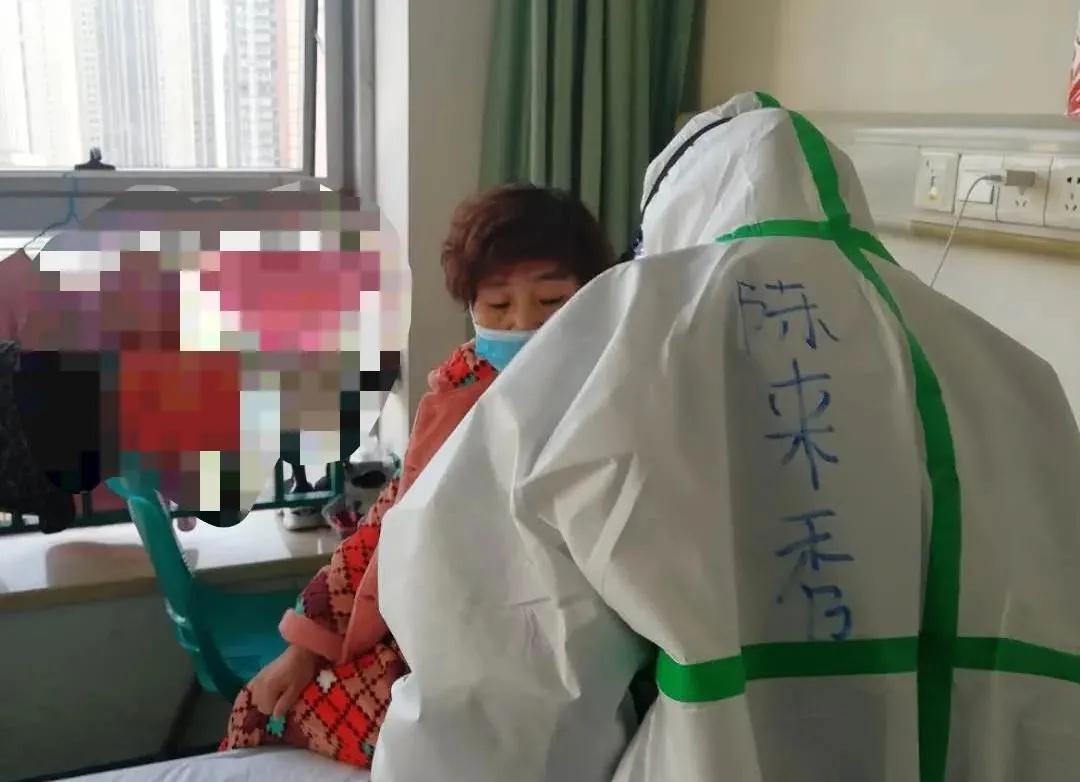 忠诚使命,大爱无垠。陈来秀所在的医疗队进驻武汉中心医院后湖院区医院第一天,她就与同事一道熟悉病人的情况,很快就投入了护理工作中去,昼夜奋战,超负荷工作。隔离病毒,但不能隔离爱。在值班的八九个小时里,她精心的护理着每一位患者,随时观察着他们的生命体征,耐心的向患者做好健康宣教、协助患者完成日常生活护理,力争把最优质、最贴心的护理提供给每位患者。往返于病房之间,为了节省物资,她和队友们一样,穿着纸尿裤,连续近10个小时的工作,不吃不喝。由于长时间穿着防护服,带着护目镜,头疼、呼吸困难、鼻子压的疼、耳朵勒的疼,各种不舒服接踵而来。她们看不清彼此的脸,只能看见防护服上的名字,背后写的“加油”字样和手势鼓励着她和她的队友们奋勇向前,一刻也不能停下脚步!