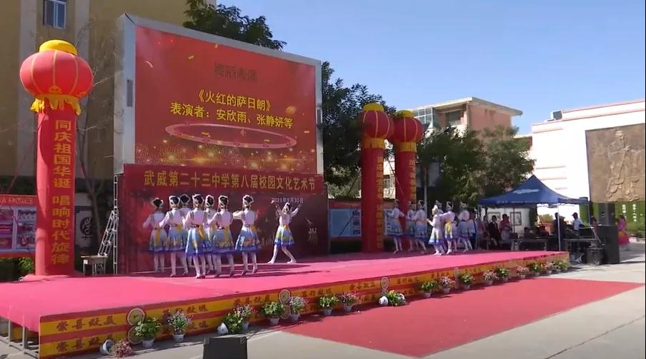 武威第二十三中学举行第八届校园文化艺术节。《我和我的祖国》《唱支山歌给党听》《花开中国梦》等一个个丰富多彩的文艺节目,既唱响了校园生活的快乐与幸福,也由衷赞美了我们伟大的祖国和伟大的中国共产党。
