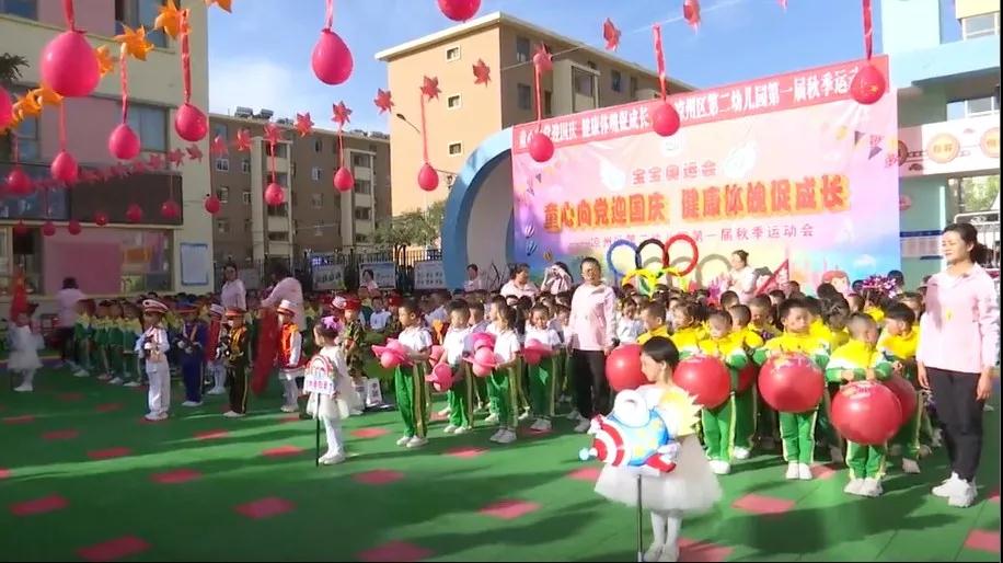 凉州区第二幼儿园举办以“童心向党迎国庆 阳光体魄促成长”为主题的第一届秋季运动会。接力赛跑、羊角球接力、小白兔拔萝卜等7项趣味项目依次开展,让秋日的校园洋溢着激情与喜庆的气氛。