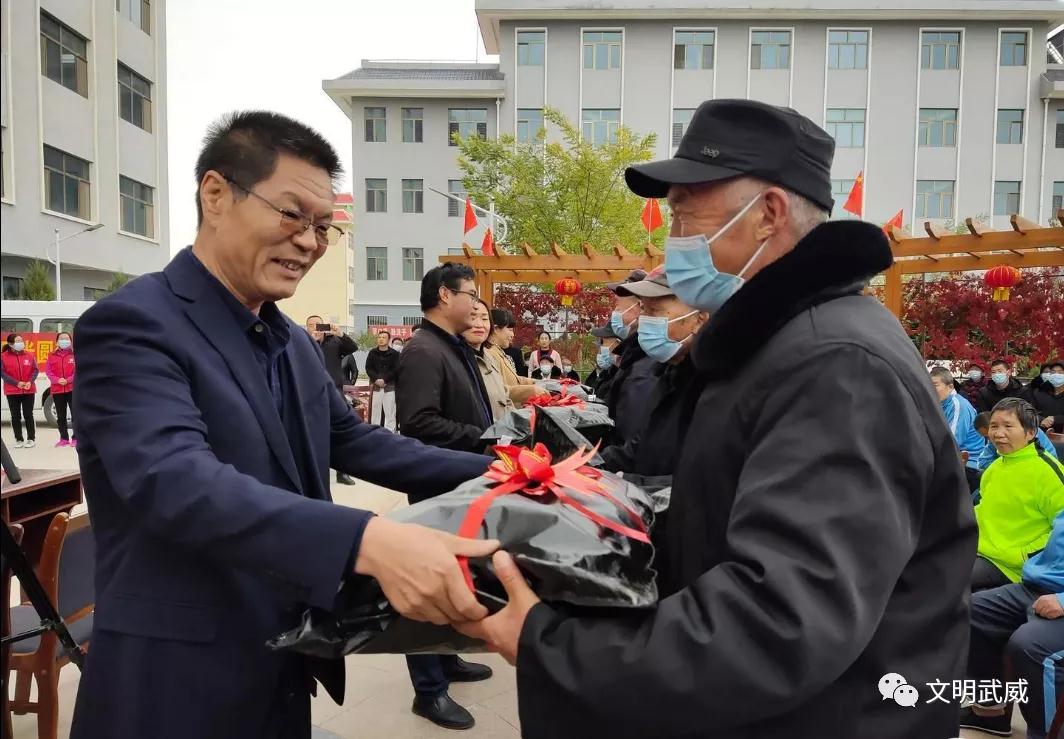 10月13日,民勤县民政局联合民勤县第四中学在苏武敬老院举行了以“九九重阳情意浓 金秋向党感党恩”为主题的文艺汇演活动。爱心企业家、爱心人士为分散特困供养人员、高龄独居、空巢、留守老人捐赠了越冬棉服和被褥,陪老人们一起欢度重阳佳节。