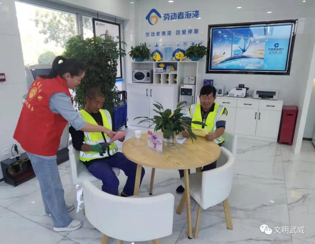 休息时间劳动者驿站成了武威市户外劳动者的最佳去处,每个驿站配备桌椅、饮水机、微波炉、医药箱等设施,渴了能喝水,热了能乘凉,冷了能取暖,累了能休息,伤了能急救成为户外劳动者喝水、避暑、取暖、热饭的新阵地。