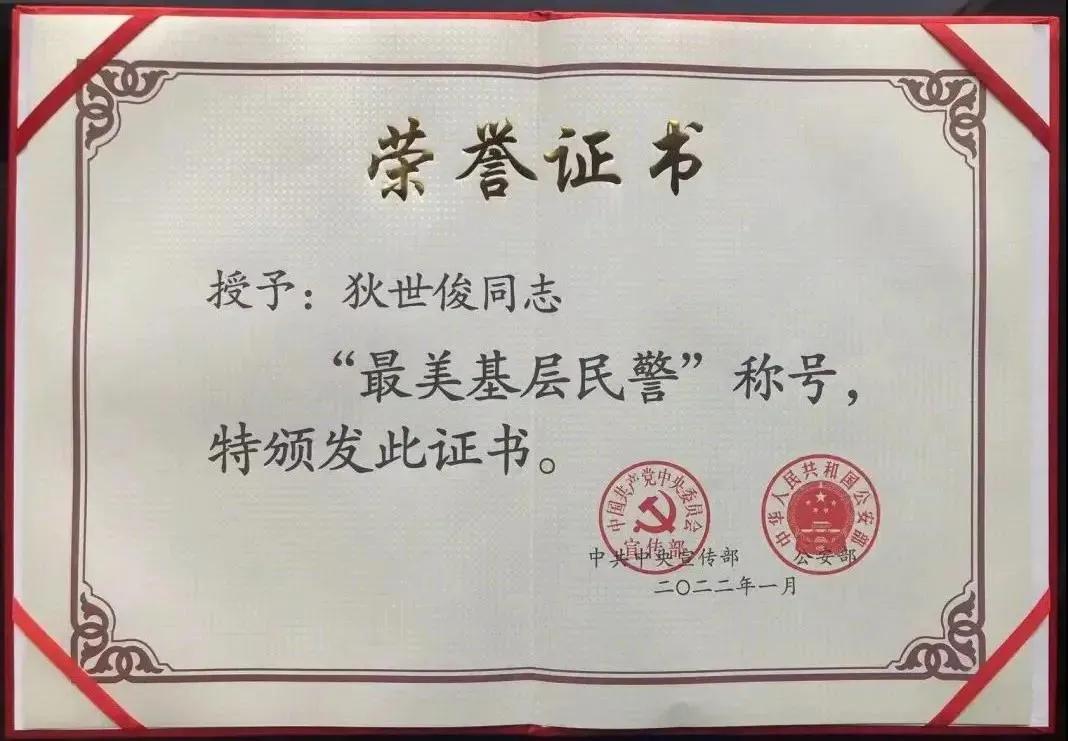 武威天祝打柴沟派出所所长狄世俊荣获2021全国“最美基层民警”称号