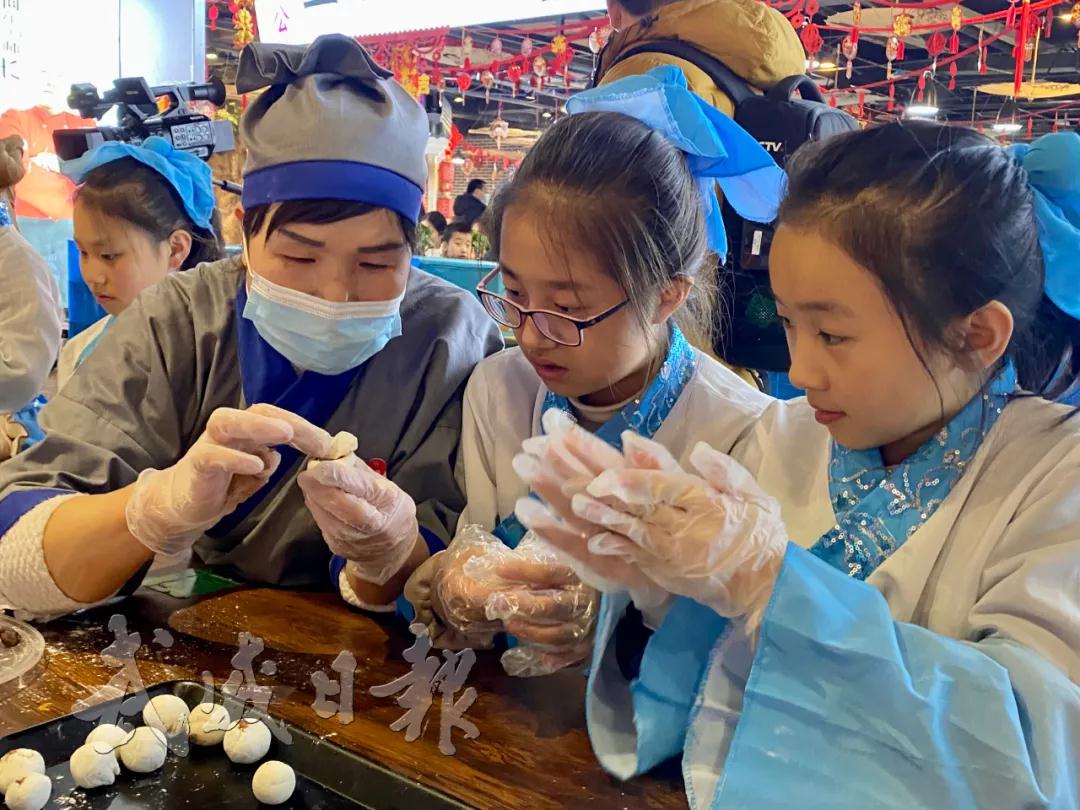 揉面、切馅、填料、捏圆……在凉州老街,十几名小朋友在面点师的带领下学做汤圆迎元宵。看,我捏的汤圆比你的圆!张一帆小朋友拿起刚刚包好的汤圆向邻座展示。听到他的挑衅,其他孩子也不甘示弱,拿出自己的汤圆一较高下。