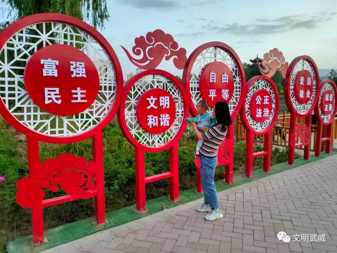 我市着力打造了一批爱国主义教育基地、主题公园、主题街、文化墙等主题教育示范点,让社会主义核心价值观摸得着、离得近、接地气。在凉州区各公园,市民总能与主题鲜明的宣传标语、图文并茂的公益广告不期而遇,“崇文尚德 包容创新”“言行讲礼仪 举止有规范”……宣传内容传递着满满的正能量,营造了积极向上的良好社会氛围。