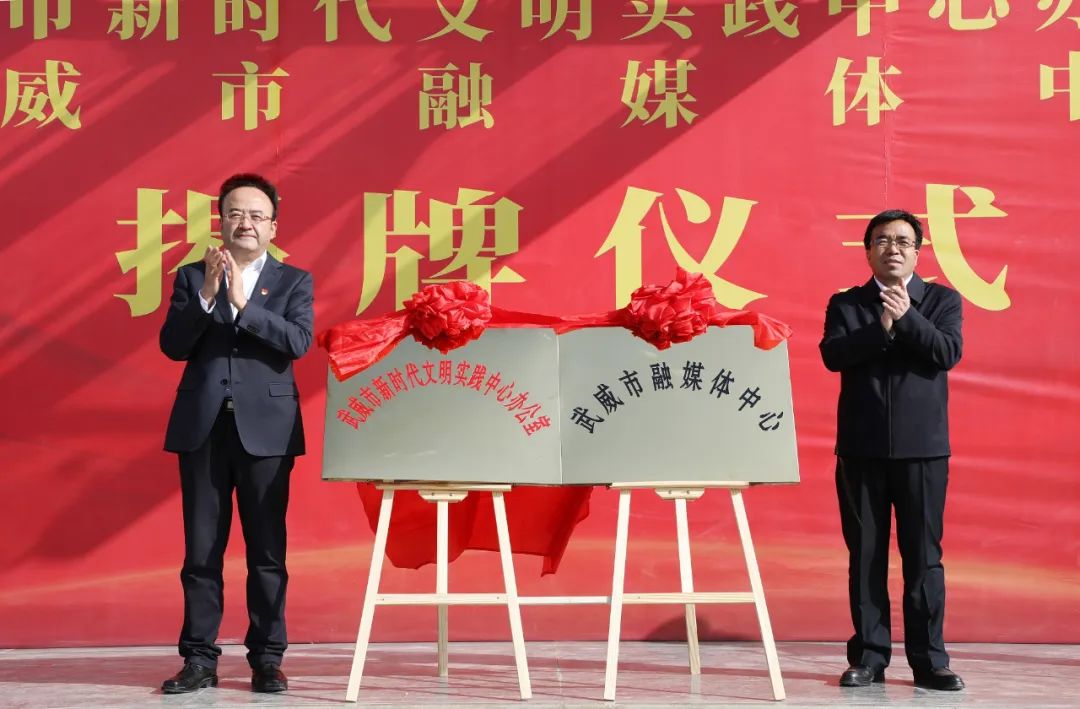 3月18日上午,武威市新时代文明实践中心办公室、武威市融媒体中心正式挂牌成立。