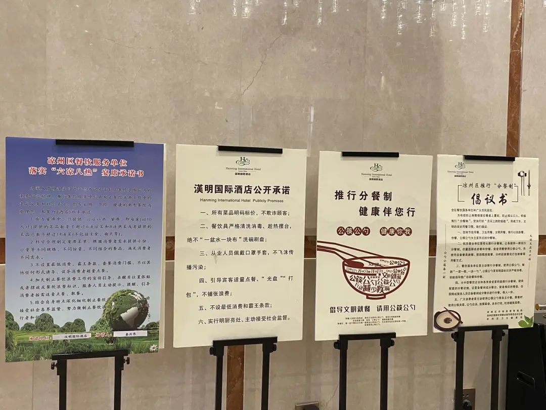 凉州区市场监督管理局食品监管股干部康建鹏说道:“凉州区市场监督管理局自推行餐饮服务单位‘六凉八热’宴席后,多措并举、强化宣传,让餐饮单位公开承诺,依法监督检查。目前,全区餐饮单位已全部落实‘六凉八热’宴席规定。”