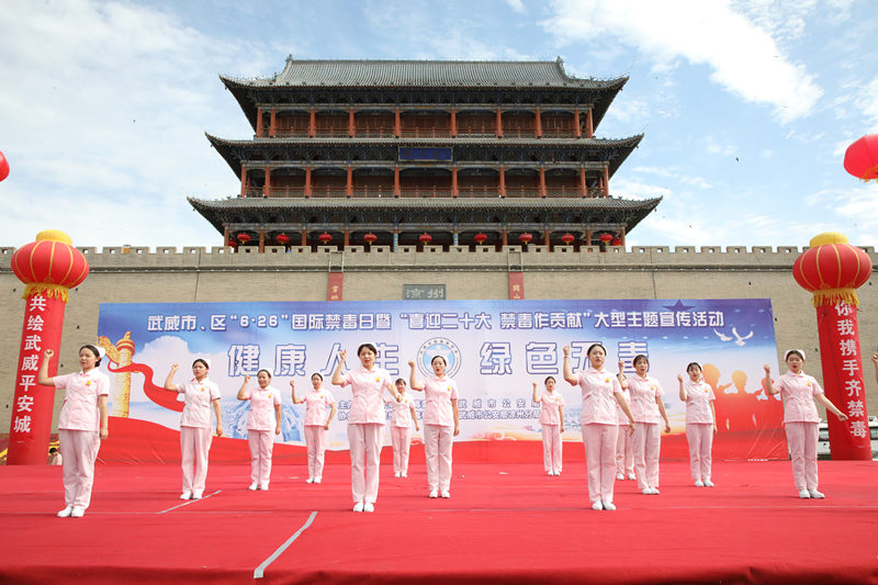 活动中,禁毒志愿者宣读了倡议书,市、区禁毒委领导带头在背景墙签名,参观了毒品仿真品,并向各行业代表及现场群众发放了禁毒手提袋等禁毒宣传品及宣传资料,公安民警及禁毒志愿者通过向广大市民展示禁毒宣传展板、横幅,发放《甘肃省禁毒条例》《家庭禁毒手册》等方式,号召市民携手共筑禁毒防线,共同抵制毒品侵害。活动现场,演出了凉州贤孝《禁毒宣传唱起来》、《我们的新时代》等精彩纷呈的文艺节目,吸引了现场群众驻足观看,现场群众主动咨询毒品知识、聆听禁毒宣讲,表达对禁毒工作的支持和自觉抵御毒品的决心。
