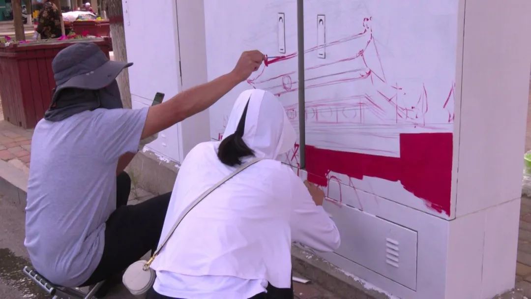 记者在县城昌松路看到,工作人员正在为电表箱进行彩绘装饰。只见他们手持画笔,以纸板为调色盘,以电表箱柜为“画板”,画笔挥舞间,“画板”上很快就呈现出一片嫣然色彩,与周围的街景相得益彰,让原本不起眼的箱柜瞬间华丽变身,给街头巷尾增色添彩不少。