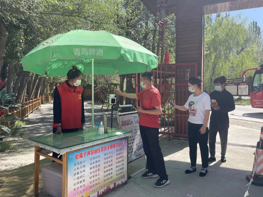 中秋节小长假第一天,在凉州区天乙生态园、磨嘴子神泉山庄门口,记者看到工作人员和志愿者正在引导游客扫场所码、测体温,游客们佩戴口罩有序排队进入景区。部分景区还为游客送上月饼,表示祝福。