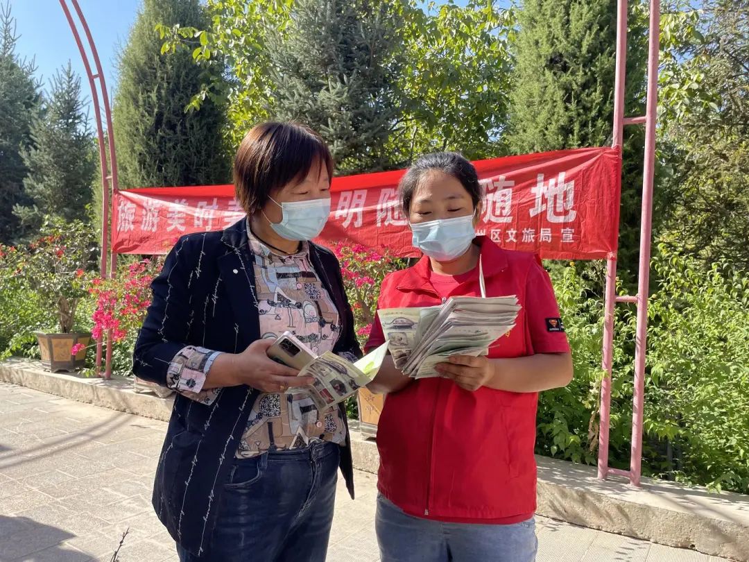 凉州区文旅局旅游管理股股长李文华向记者介绍:“在节假日期间,我局组织志愿者深入景区开展文明旅游志愿服务活动,志愿者一方面积极劝导游客科学防疫,请游客自觉佩戴口罩、测温、扫场所码等防疫措施;另一方面向游客发放文明旅游宣传画册,提醒游客不要乱扔垃圾,保护环境,养成文明出行、文明健康、绿色环保的旅游习惯,助力全国文明城市创建。”