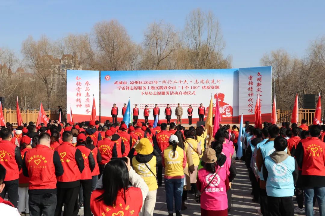 为深入学习宣传贯彻党的二十大精神,大力弘扬雷锋精神,激励更多的人参与志愿服务,推动市级优质资源下沉基层,努力营造“我为人人 人人为我”的社会氛围。3月5日上午,由市、区宣传部、文明办、文明实践办主办,市志愿服务联合会协办的武威市、凉州区2023年“践行二十大 志愿我先行”学雷锋志愿服务主题实践暨全市“十个100”优质资源下基层志愿服务活动启动仪式在凉州区植物园举办。