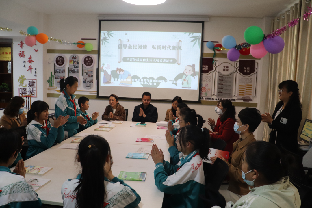 4月21日下午,武威市凉州区东关街富民花园社区文明实践站联合发展街小学开展倡导全民阅读,弘扬时代新风丰富活跃文化生活文明实践活动。