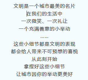 细微之处见文明!传播文明、引领风尚,让我们一起行动起来从小事做起,让文明从此刻开始!
