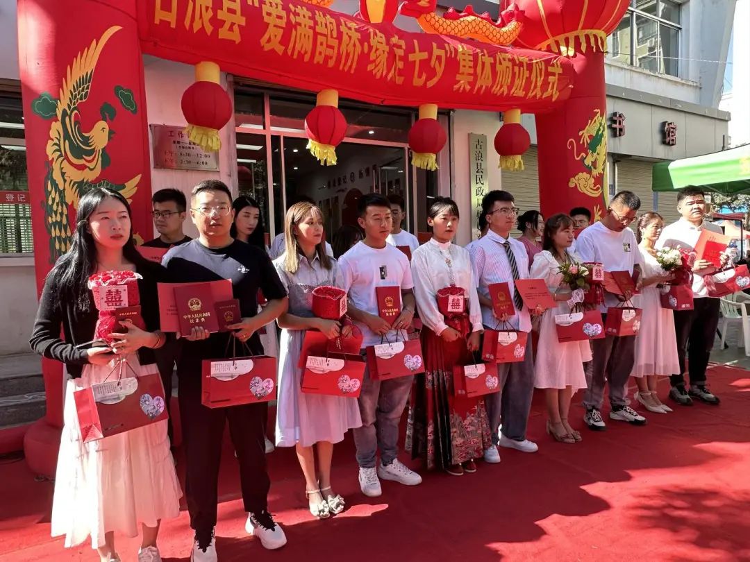 迢迢牵牛星,皎皎河汉女。农历七月初七,是传说中牛郎和织女鹊桥相会的日子。8月22日,古浪县民政局婚姻登记处举行了“爱满鹊桥·缘定七夕”集体颁证活动,为新人们开启共同书写情意绵长的新篇章。