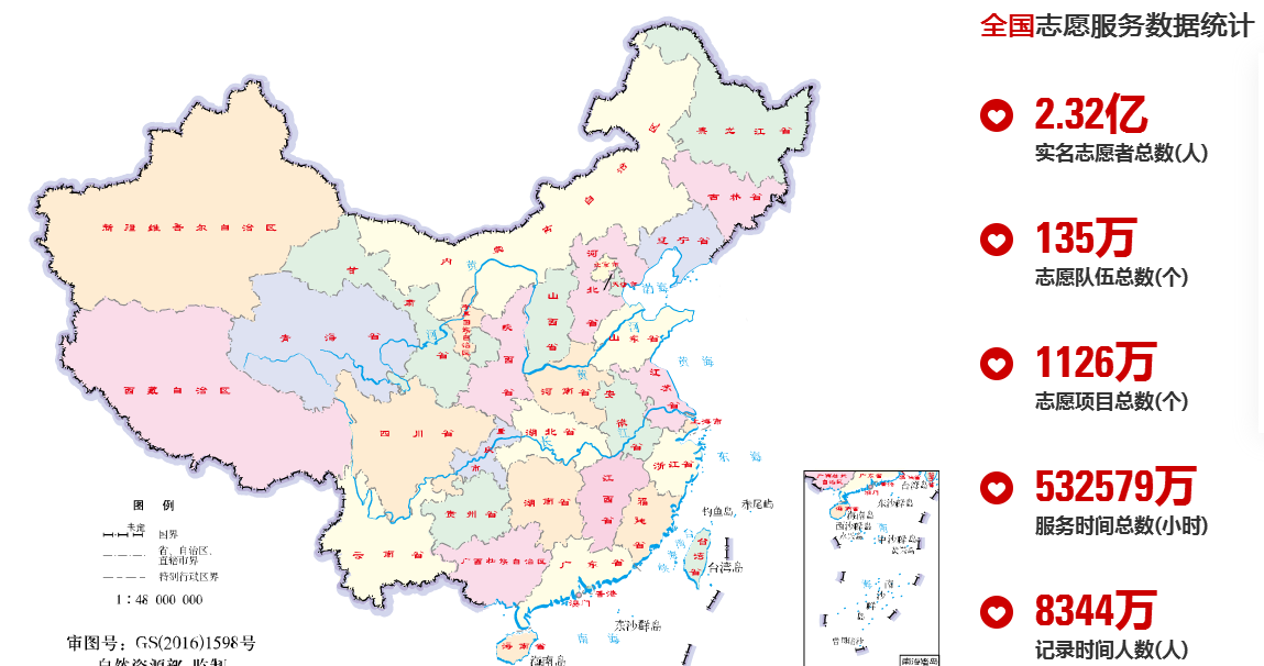 申明:具体数字以全国志愿服务网为准,如有漏登或者数字错误请告知全国志愿服务网修改。