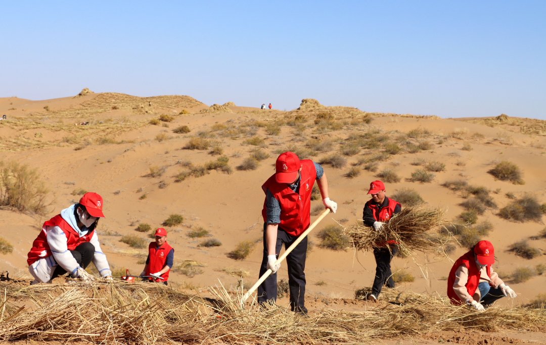 压沙现场,市领导与市直部门、古浪县机关干部职工一道扶犁开沟、俯身铺草、挥锹压埋、填沙整形,以实际行动践行习近平生态文明思想。大家表示,要深入贯彻习近平总书记在加强荒漠化综合防治和推进“三北”等重点生态工程建设座谈会上的重要讲话精神,大力弘扬新时代武威精神,全力打好“三北”工程攻坚战,久久为功推动全市生态环境持续好转。