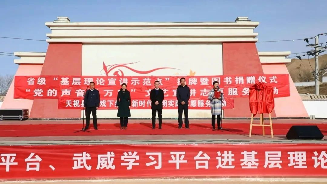 11月28日,武威市首个省级“基层理论宣讲示范点”揭牌仪式在天祝县哈溪镇河沿村举行。省委讲师团副团长张启晔和市委宣传部副部长张晓明共同为省级“基层理论宣讲示范点”揭牌。市委讲师团团长蔡生菊,天祝县委常委、宣传部部长郭崇梅出席揭牌仪式。