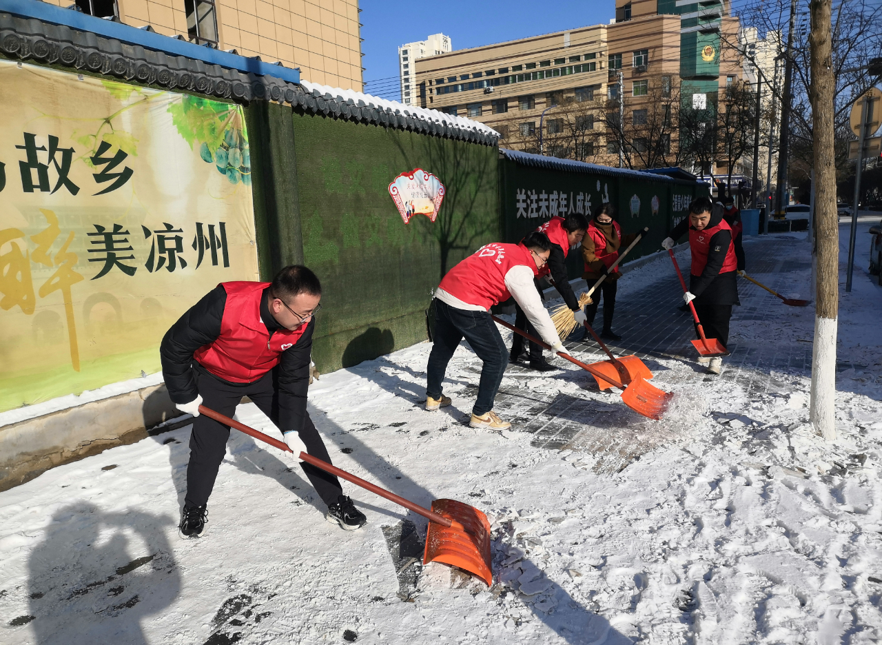 降雪天气,在装点城市的同时,也造成路面积雪、结冰,给市民群众出行带来不便。12月15日,武威市、区干部群众“以雪为令”走上街头,开展“铲冰除雪”志愿服务活动,保障市民群众安全出行。