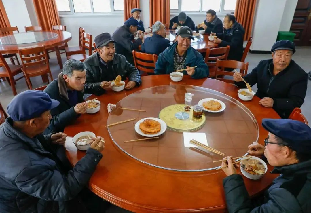 ▲老人在新堡乡新时代文明实践所关爱服务中心就餐