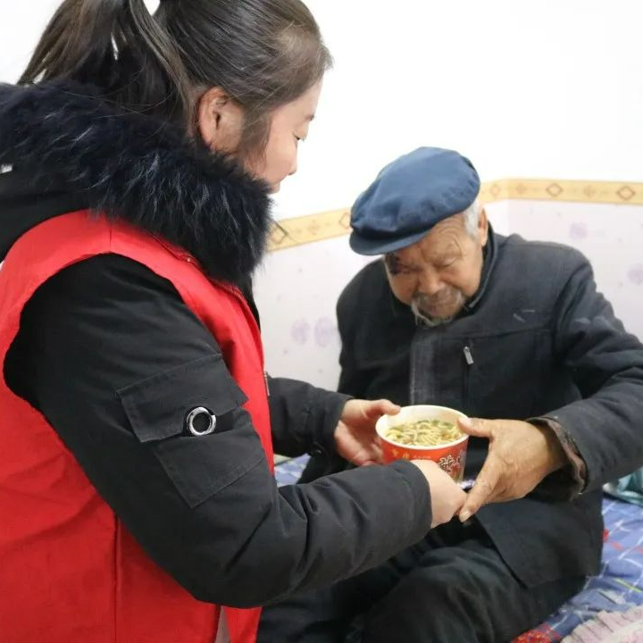 ▲民权镇新时代文明实践所志愿者送粥上门