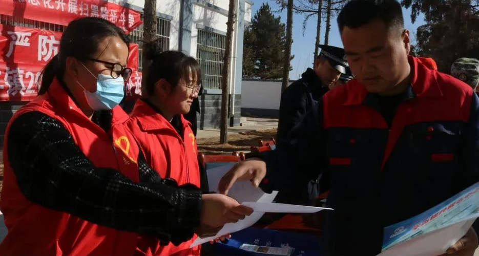 ▲土门镇新时代文明实践所组织志愿者开展“党的声音进万家”理论宣讲活动