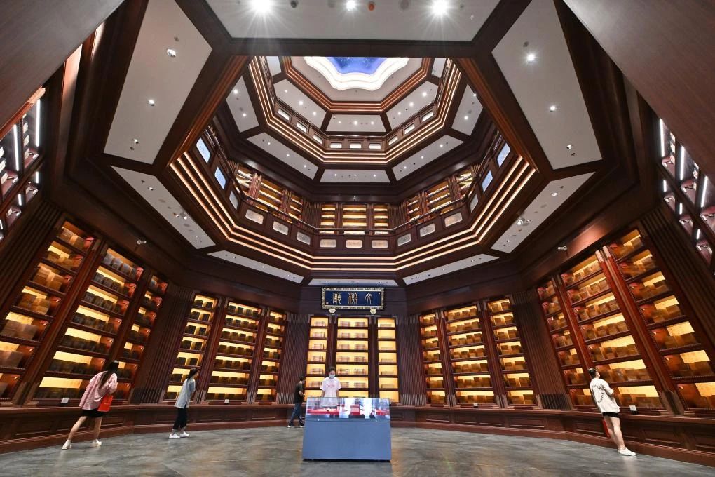 2022年7月30日,观众在中国国家版本馆中央总馆文瀚厅内参观。当日,中国国家版本馆开馆暨展览开幕式在中国国家版本馆中央总馆举行。新华社记者 李鑫 摄