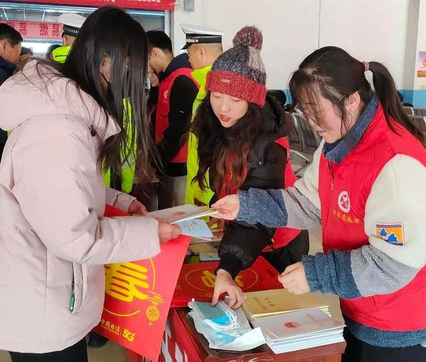此外,志愿者们还为乘客发放了安全出行、移风易俗等宣传资料,口罩、春联等物品。他们以实实在在的行动、真真切切的关心、热情周到的服务,让广大旅客切身感受春运旅途的温暖。