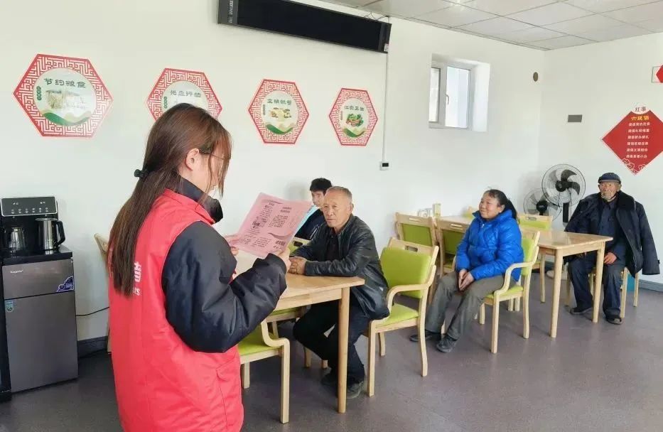 “餐前一刻钟”,理论宣讲入生活。村内老党员、老干部与志愿者一起学习习近平新时代中国特色社会主义思想和党的二十大精神,志愿者将乡村振兴、法律法规、移风易俗等理论政策讲给老年人听,大家围绕乡村产业发展、人居环境建设等内容开展交流,从村里的发展变化到田间地头的农耕收成,从党中央的精神到上级的惠民政策,老年人畅所欲言,志愿者认真倾听老年人的心声、耐心为老年人答疑解惑。同时,结合与老年人生活紧密相关的理论知识,向老年人宣传讲解防诈骗等内容,助力老年人平安健康生活。“餐前一刻钟”深受老年人喜欢,被老年人称作15分钟的“餐桌论坛”。