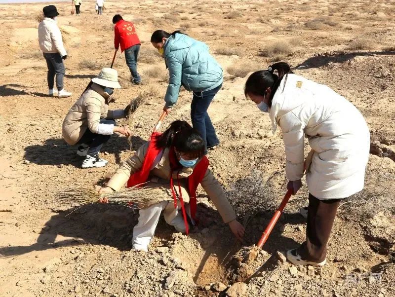 “‘十年树木,百年树人,我们每年都会组织教职工参加义务治沙造林活动,积极投身生态建设和国土绿化,争做义务植树的绿色传播者模范践行者,以此吸引更多社会人士关爱自然、重视生态。民勤职业中等专业学校团工委主任谢荣说,作为教师,不仅要传授知识,更要以身作则,引导学生树立正确的价值观和环保意识。