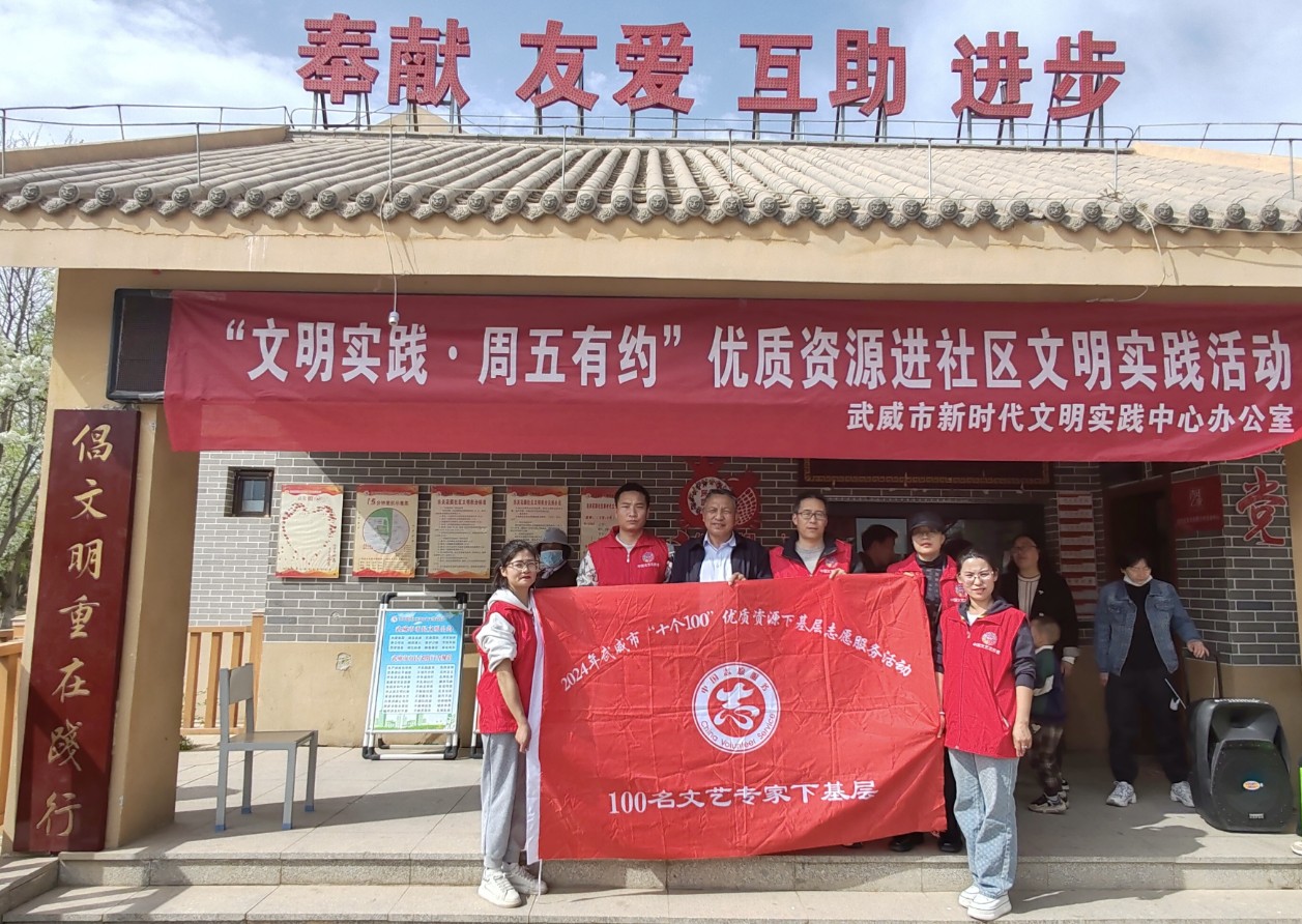 100名文艺专家下基层。4月19日,为迎接即将到来的世界读书日,营造全民阅读良好氛围,武威市文联组织文艺家走进凉州区东关花园社区文明实践站,开展100名文艺专家下基层文明实践活动。活动现场,人头攒动,艺术家们向群众发放全民阅读倡议书100余份,赠送刊载武威本土作家、诗人精品佳作的文学内刊《西凉文学》和《天马》诗刊200余本,号召市民朋友与书为友,热爱阅读,读好书、做好人、圆好梦。为了让市民朋友更便捷的了解武威本地最新文艺动态、欣赏文艺作品,更好发挥网上文联作用,艺术家们向市民朋友宣传推介了武威文艺微信公众号,让市民朋友坐在家里就能看展览、看演出,感受艺术的独特魅力。