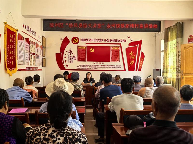 为进一步引导广大群众共同抵制高额彩礼等陈规陋习,弘扬时代新风,培育文明乡风、良好家风、淳朴民风,近日,凉州区“移风易俗大讲堂”活动走进金河镇蔡家滩村开展宣讲活动。