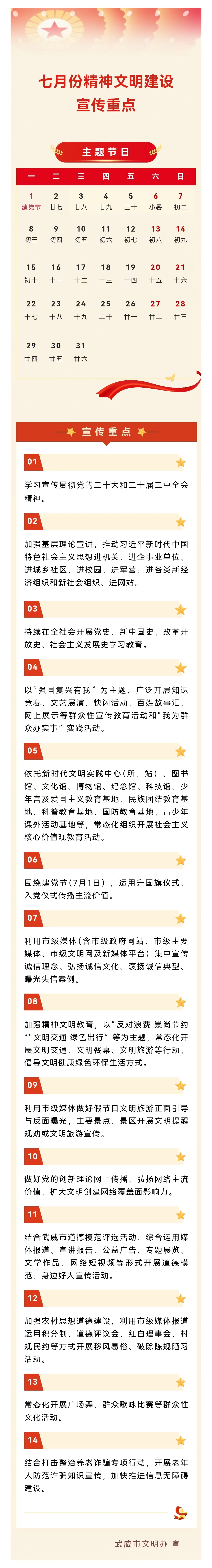 武威市七月份精神文明建设宣传重点来啦!