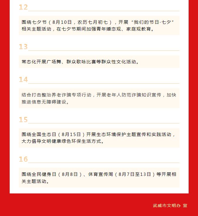武威市八月份精神文明建设宣传重点来啦~