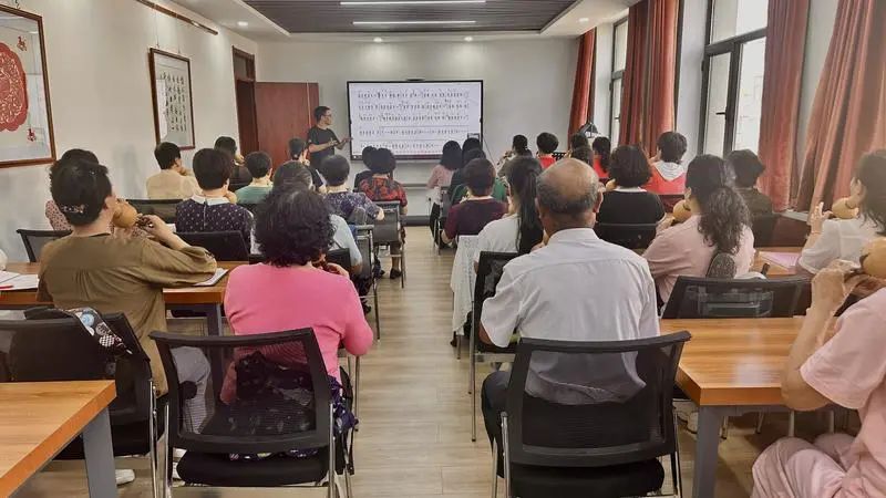 在美术公益培训课堂,任课老师按照学员的专业水平,从构图技巧、明暗对比和色彩调和等方面进行讲授和指导,大家在老师的指导下,穿梭于色彩绚烂的绘画世界。在音乐公益培训课堂,老师用通俗易懂的语言向学员们讲述葫芦丝的指法技巧,大家手握乐器、认真练习,耳熟能详的旋律阵阵响起。在合唱练习室,老师耐心指导学员们从练习发音到歌曲合唱,大家放开歌喉,认真投入、陶醉其中,优美的歌声和悠扬的乐器声交织在一起,萦绕在整个走廊……