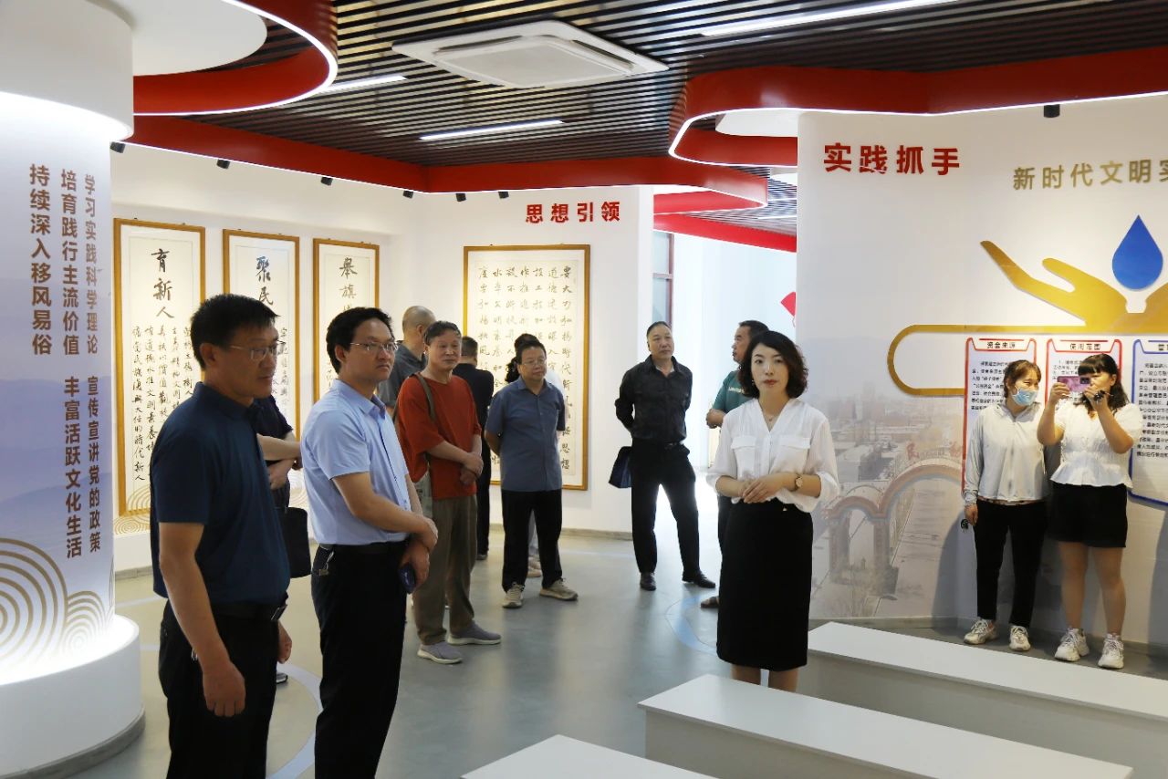 书画志愿者、现场群众共同参观民勤县新时代文明实践中心
