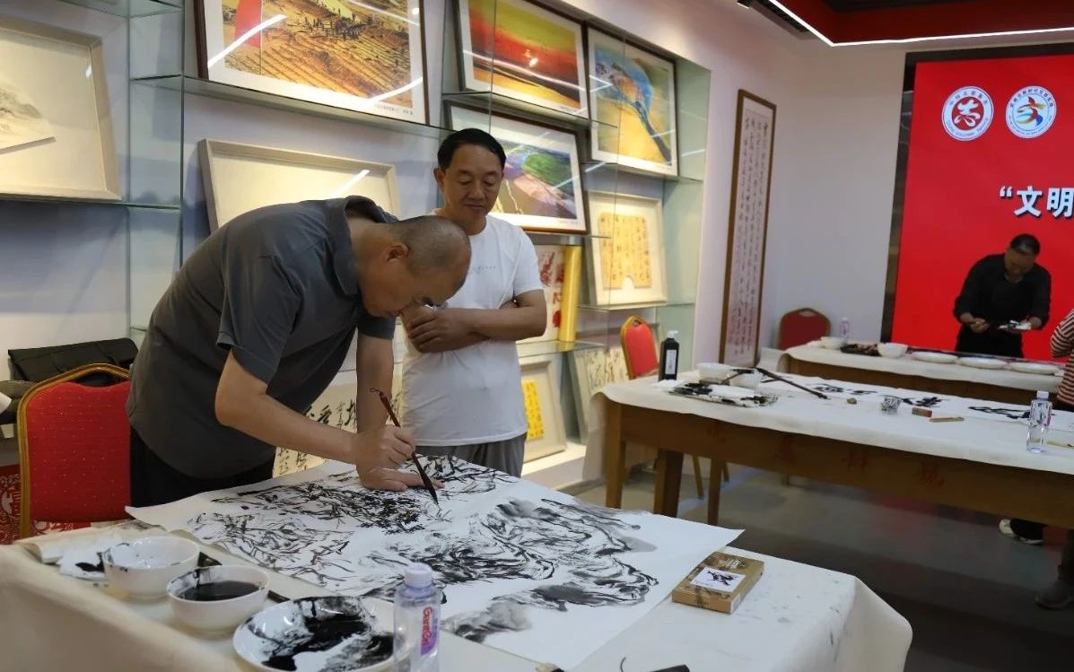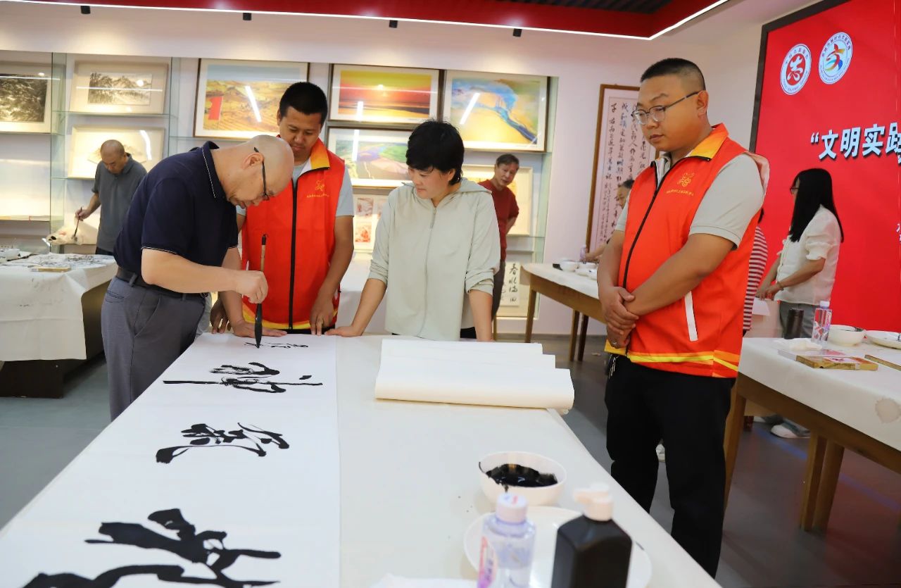 为庆祝中华人民共和国成立75周年,大力营造爱国奉献、团结奋进的浓厚社会氛围,8月29日,市文明实践办、市文体广电和旅游局、市书画院、武威美术馆组织书画名家到民勤县新时代文明实践中心开展“文明实践·周五有约”书画志愿者走基层文明实践活动,弘扬中华优秀传统文化,以优质书画创作滋润人心、以文化人,丰富群众精神文化生活。